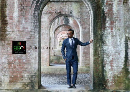 スーツメーカーのhistoryとggriがコラボして出来上がったオリジナルスーツ。